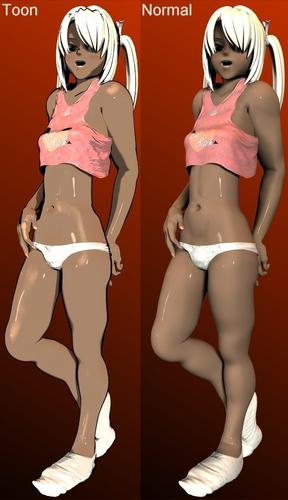 Here are some current renders of the figure with side-by-side toon and normal render styles for comparison...