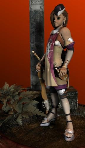 I've actually had a few people ask if I have a male counter-part planned... I can honestly say I do yes... He'll be based on my own sketches and artworks the same as this figure is.... I also plan somewhere down the road on doing some monsters and animals from the same series of RPG game sketches as these have come from (I wrote my own RPG some years back and am now using the sketches I'd done for that as inspiration for my 3d work) :)