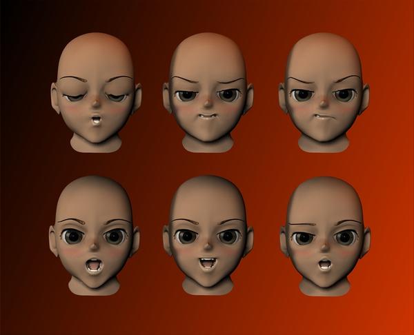 I plan on doing some basic head morphs... such as a chubbier face, widder chin and nose and some other basics... plus a few expression morphs for the mouth but haven't gotten that far yet... Currently I'm working on getting the Body morphs list done and set up and after that will start on the head and face morphs. The body morphs will have to be transfered into the basic clothing as well before I can do a public release...