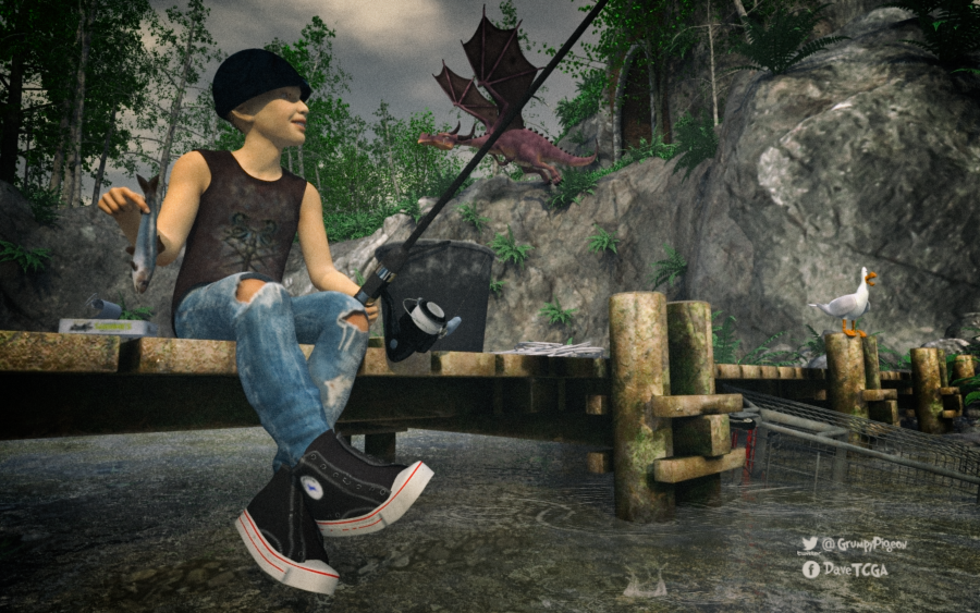 I modelled the beanie, seagull and the GymBoots for Leon by Vyusur. Also used End of Tracks by Tango Alpha , 3DU's dragon, Sardines by Ken at HW3D.