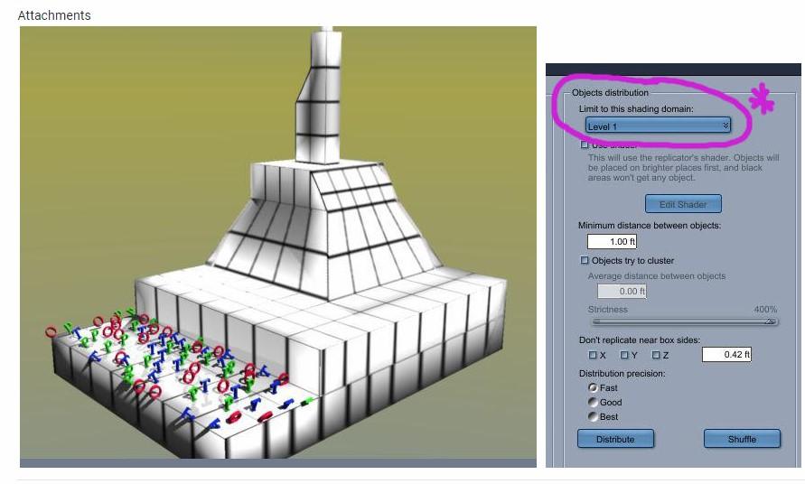 You should be able to skim the thread quickly and see what is going on if you are not really interested in building giant cattle herds or forests at this time.  I think it will be helpful.  It explains the Carrara method of controlled replication.  The Daz Studio method of controlled instancing works very similarly, especially with Ultrascatter by Howie Farkes.