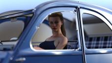 This is a little action render of a lass driving past a photographer at the side of the road. She spots him & their eyes meet for a moment.