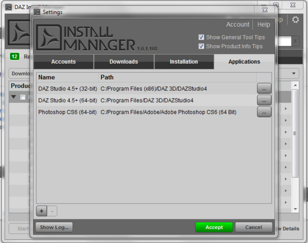 Alas; after you started the install manager (logging on is optional) you'll find a "cog icon" in the upper right corner. Click it. Now you'll get a new window which has 4 tabs: "Accounts, Downloads, Installation and Applications".