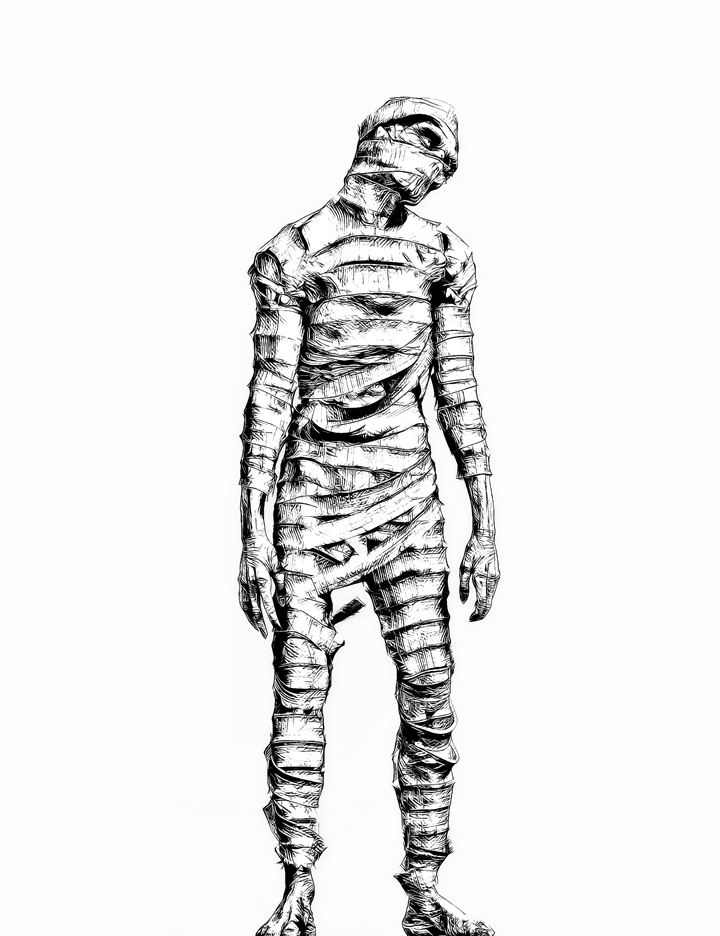 Of the images above, I like the linework on the tattered mummy most. The cross-htching lends a nice texture.