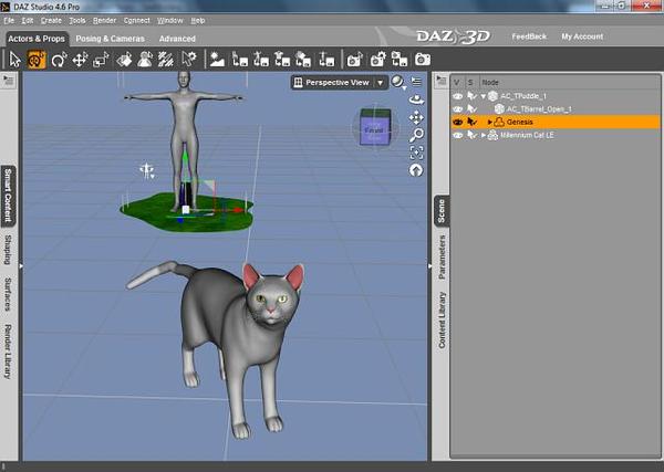 Now, there is a side-effect to this so you need to be careful here. Because by changing the parent I'm also "linking" the Genesis figure to the puddle object. So whatever I do to the puddle object will also automatically apply to Genesis. In my last picture I've resized the puddle and dragged it around all using the universal tool. Well, you can see the effect.