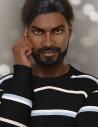 Sanjay out of the box with his hair and beard set and Sanjay again using the growing up morph set to age gim to 9-10.