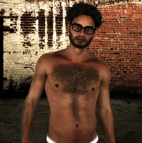The M6 Nevio texture was edited with a tattoo. All skin maps were modified with EZskin2. The gym pants on the M4/K4 mix child was made usable in Poser's fitting room. M6's denim jeans was just conformed over his underwear - the boxer brief was originally for M4 but could be converted in DAZ Studio, as was the hair for M6 (which is GQ event hair for M4).