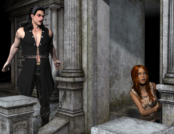 I was hoping to see some great vampire renders in here by now. Sorry it took so long to post, it's been a busy day. The first is a render I did with Hugo as he approaches his victim. She doesn't sense that he is behind her.