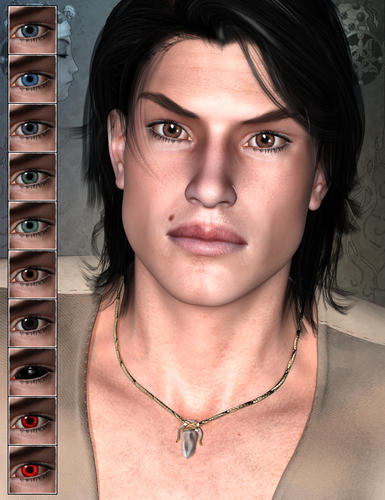 About the eyes: we included 7 natural eyes, and 3 of fantasy, that are the typical vampire eyes. One set is completely black and may also work for demonic or evil characters, or even a wizard, or someone possessed by a curse. You also have the red eyes of vampire, and another one with the red sclera that you saw in many movies.