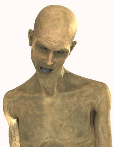 I took another look at the AAL's and ASL's and decided to see what would happen if I set the shading rate of the lights to the shading rate in my render settings, which is 0.10. The result was a much, much sharper render. Yep, the Bruce Willis zombie is back! His jeans are from Smay;s Mr Hyde with a corroded UberSurface 2 preset loaded and tiled.