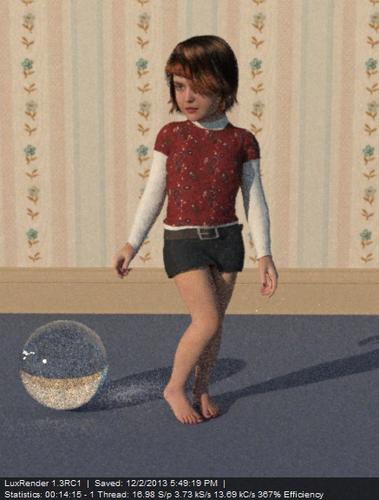 I don't mind waiting an hour for the scene to render. The issue that I have is some simple scenes don't load properly in Luxrender. I'm going to run some tests with Luxus and Genesis. I'm not sure why Luxus and Luxrender are generating errors with simple scenes like the one above. If I add shoes and stockings to Genesis, Luxus will give me a render error or generate a truncated Lux file. The same scene renders fine in 3Delight. Ok, I'm going to play with Genesis and Luxus now.