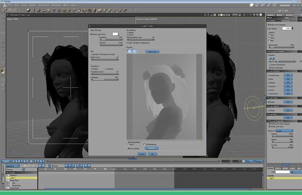 I am experimenting with a light cone for my "Sugar Skull" girl,and I just wanted the rays and nothing else so I could try and composite it in photoshop. So I made all the textures black and did a render. Now, this render looks suspiciously like a depth map to me...mmmm may be I could use it as one? It has no jaggedy edges and the hair is there! What could possibly go wrong.....