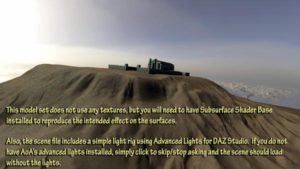 The High Place of Inanna is an ancient temple complex sitting atop a hill terrain feature. It's my first attempt at doing a model from scratch, so if I've packaged it up wrong, please let me know and I'll re-upload an amended version (I mean if it doesn't load properly type of error, not because it's not located where you would nornally put your building props).