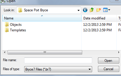 Space Port seems to be downloaded. But when i try to open it in Bryce, an empty file opens up. I've uninstalled and reinstalled product several times. I've learned a lot, but I still can't get my purchases to open up in Bryce.