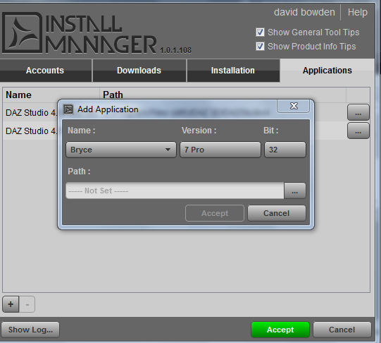 Install Manager cannot find a required path. The installer for "DSC-001" requires that the installed path for "Bryce 7 Pro, 7, 6, 5" be defined. Make sure that a path for this application is present on the "Applications" page of the "Settings" dialog, then try again.
