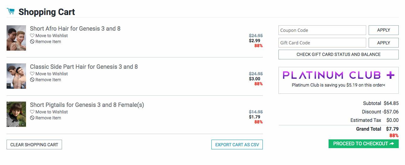 I totally missed "Buy 3 or more Debut New Releases to get an EXTRA 30% OFF* them and Platinum Club+ For a Day Items" on today's sale page. So bought one of today's DNRs that I thought was interesting, and 30 PC+FAD items. I could have thrown in 2 other DNRs and the extra $9 on the PC+FAD items and increased discount on DNRs would have put the total about the same, so I could have gotten 2 more DNRs essentially for free.