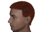 I played around with the brush opacity during the paint stage in the hopes of getting a more realistic distribution, but that doesn't seem to have worked. A previous experiment with using multiple texture sets failed, but I'll probably give that another shot for more realistic results. To get the curly effect, you'll want to lower the segment length (both under interpolation and the style curve options) as low as possible, then alternate surface attract curves with curl curves to curl the hair without folding it inside the figure. I'd keep clumping fairly low, but scraggle high, and add a very, VERY small amount of frizz.