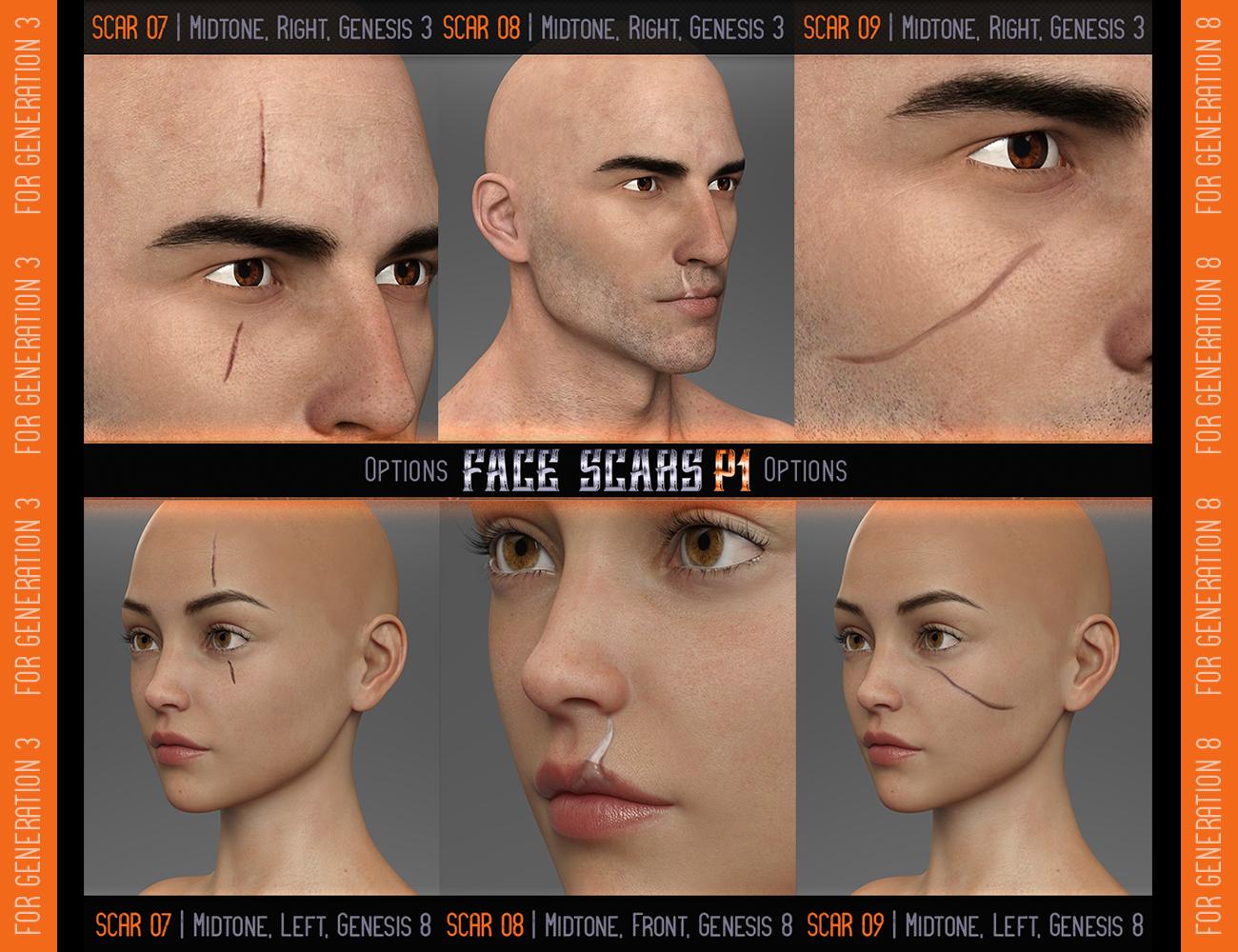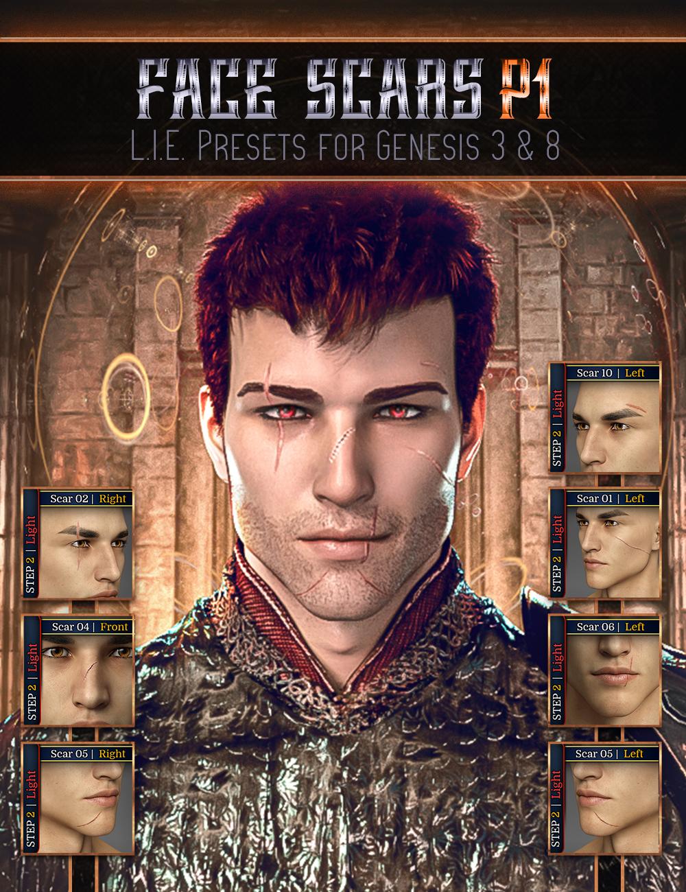 LIE Face Scars for Genesis 3 & 8 [Pack 1]