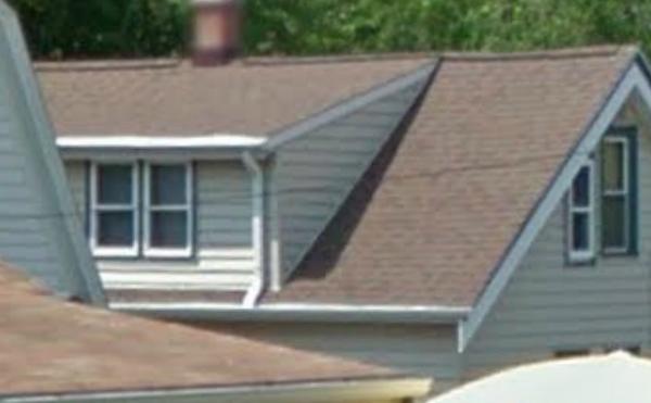 The house has seen quite a few changes originally there were three windows where the picture window now is and the front porch has been redone. There used to be a huge maple (there was also one in the back yard as well) and a flower bed with a spruce tree.where the small tree to the right is The grey house on the left is where one of my best mates "Ziggy" used to live.