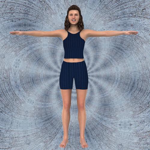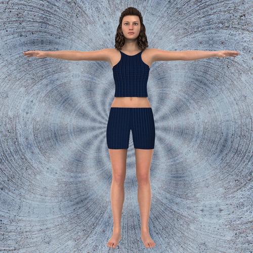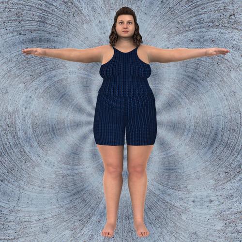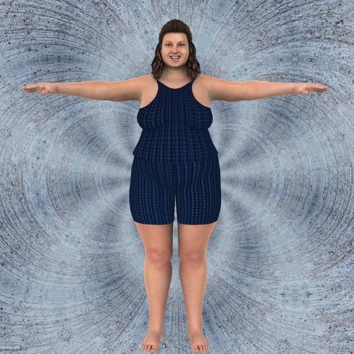 So far there are 2 pieces of clothing made ... what we used to call a "muscle shirt" and a pair of shorts. G2F. Target morph = "heavy"