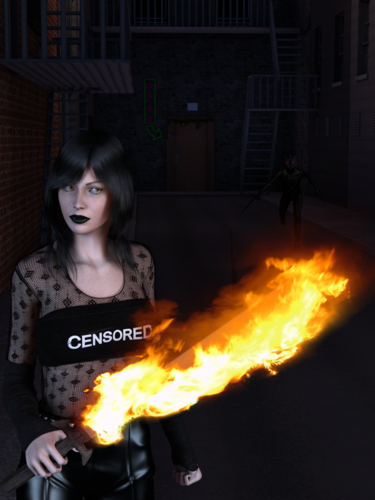I decided I would give rendering each major piece of scene separately a shot, even though I couldn't get it to work well the last time. The first picture I'm uploading is everything rendered in daz all at the same time, the way it should look (minus the needed alterations, of course). The next shot is the main character, the background and the villain in the distance rendered in 3 separate pngs and put together in GIMP. Notice the borders around the characters. Is there an easy way to get rid of these, or should I just stick to editing the first picture. Thanks in advance, James.