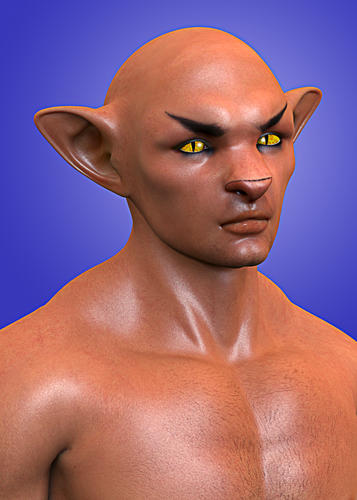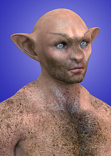 Thanks, Bill! That's actually "Pickles"; I thought it would work better, since Pickles already has a muzzle and no human-style nose, plus the paws'n'claws ;). There's a lot of work on the head using both magnets and the morph brushes in Poser Pro 2014, and it's still not really to my liking, because the head just doesn't have enough resolution, but it's close (2 levels of subdivision help ... ). I used a displacement map, set to a negative, to inset his eardrums (can't really see them in this shot, unfortunately). I modeled the spikes, and I'm going to also model 'dentures' to go into the groove I inset for his mouth.