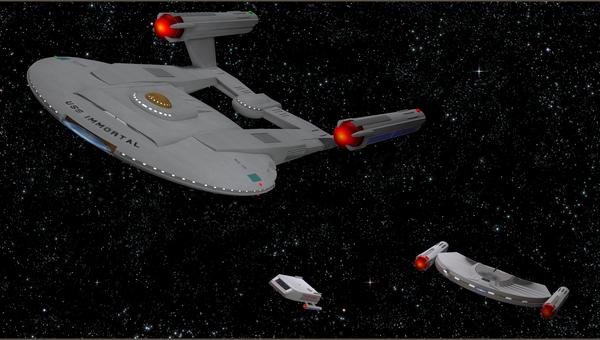 From behind the mirror a trio of ships The Immortal, Revenge and Barbarian