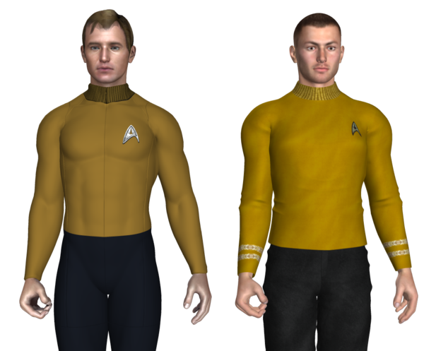 I also create a set of the ST Cage uniforms in M4 Valiant and V4 Courageous.. This should give people a choice on what they want to use. At this point, I haven't resolved the sleeve-ranks on the uniforms, I might just release it without them.