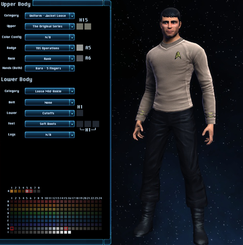 For this project, I am using the Cage-era uniforms from Star Trek Online MMORPG as a guide to the colors and appearance.
