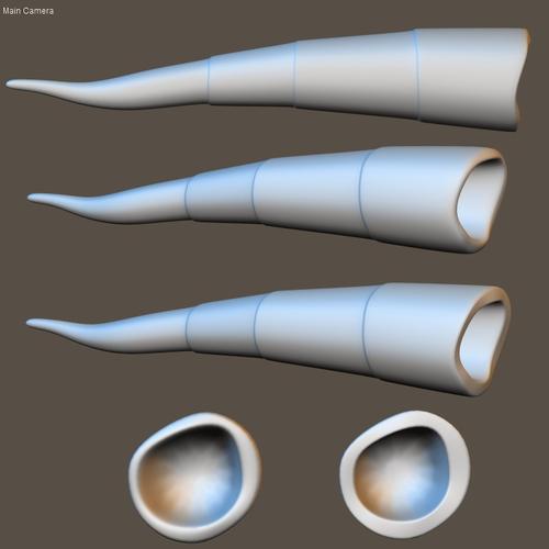 Anyway, I've attached a draft render showcasing some different views of two slight variations. The top shape is depicted in (more or less) true profile, based upon the captures I used, 574 and 576. The second and third ones down are based upon the more familiar three-quarter shot used earlier in the episode. The third down has a somewhat flat "rim" around the gaping "maw" approximating what we saw in the episode. You can see how it looks "face on" in the bottom right shape. The second shape down and the bottom left have a slightly more "chamfered" or rounded "rim" around the maw. The one with the "flat" rim is more accurate to the episode, but in some ways I think the second with the "rounded" rim has a better "flow".