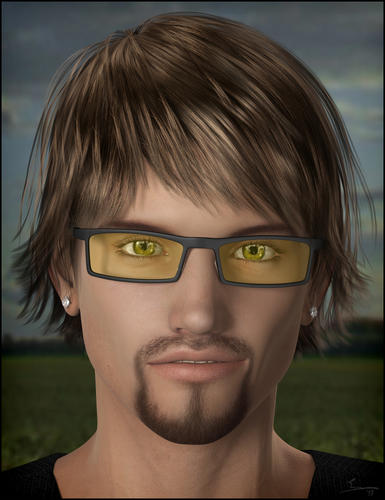 First render with the character. Did as was suggested and combined textures in PaintShop Pro in order to use both face tattoo & beard option. Really like all the options that were included.
