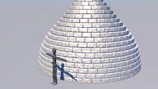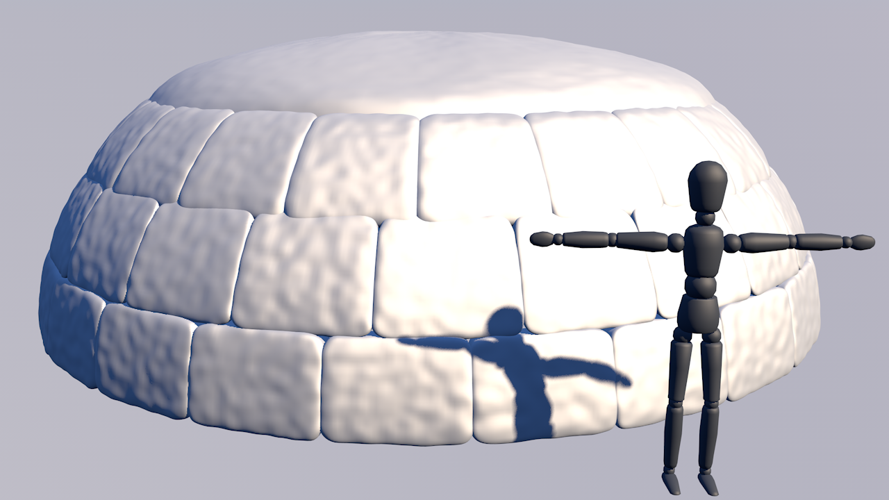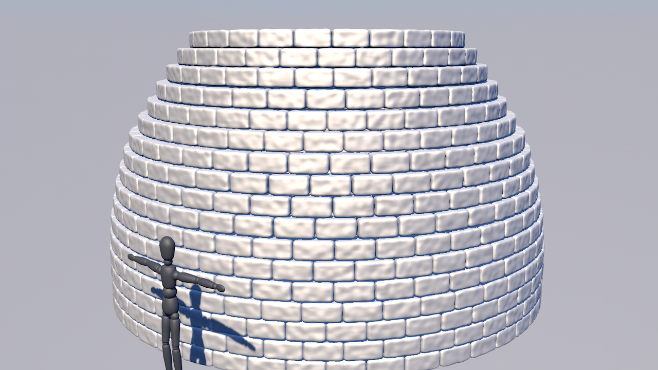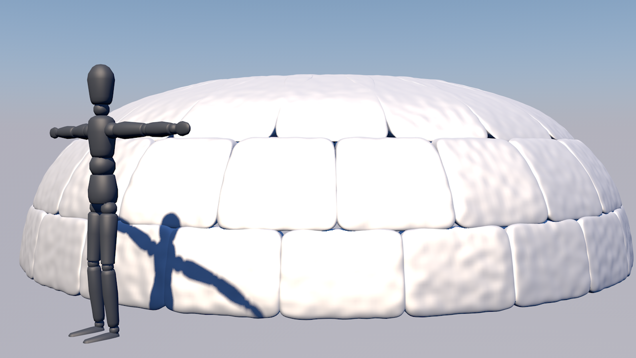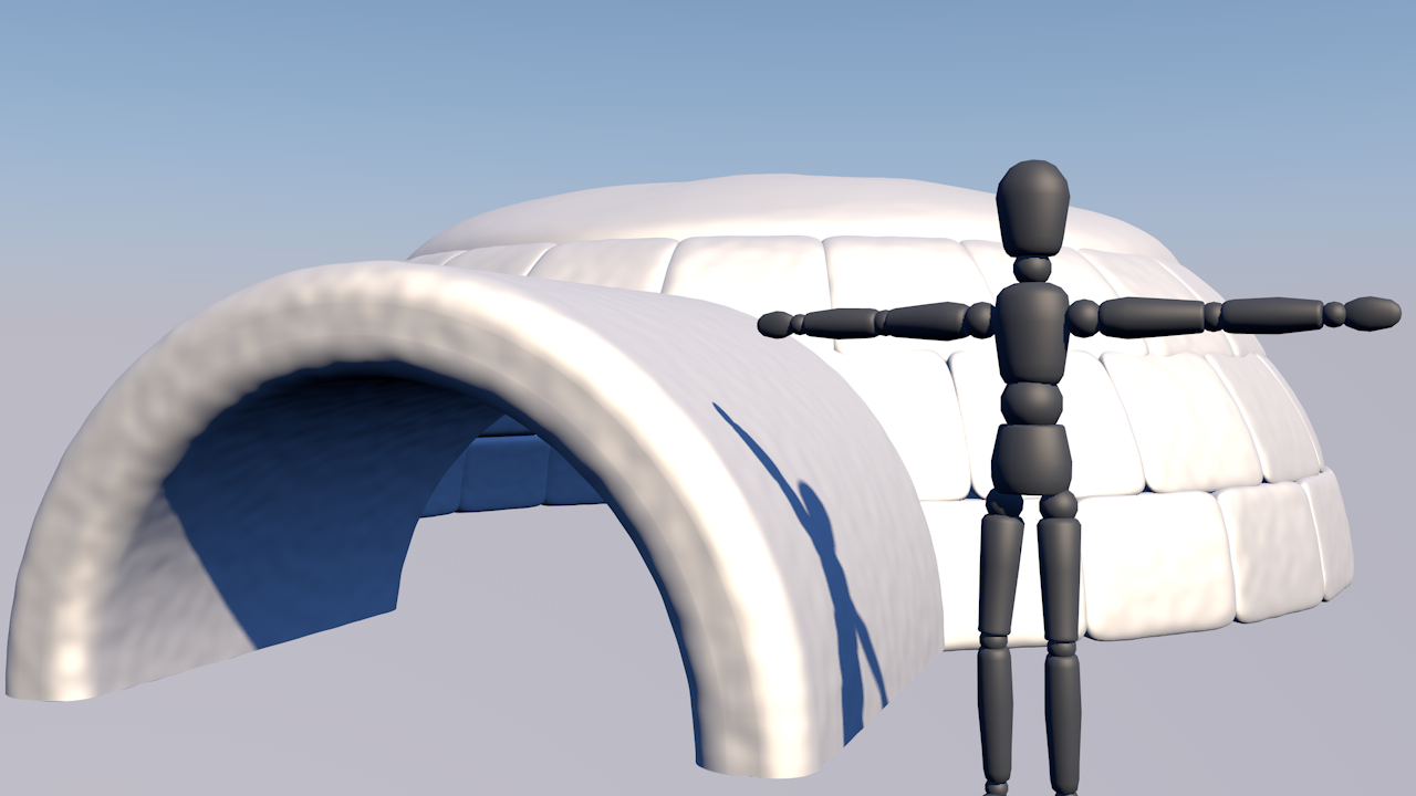 I should probably be a bit more aggressive with sloping it inwards, as now it's way taller than it needs to be. The figure is 1.8 meters tall, making the igloo as it currently is rather palacial.