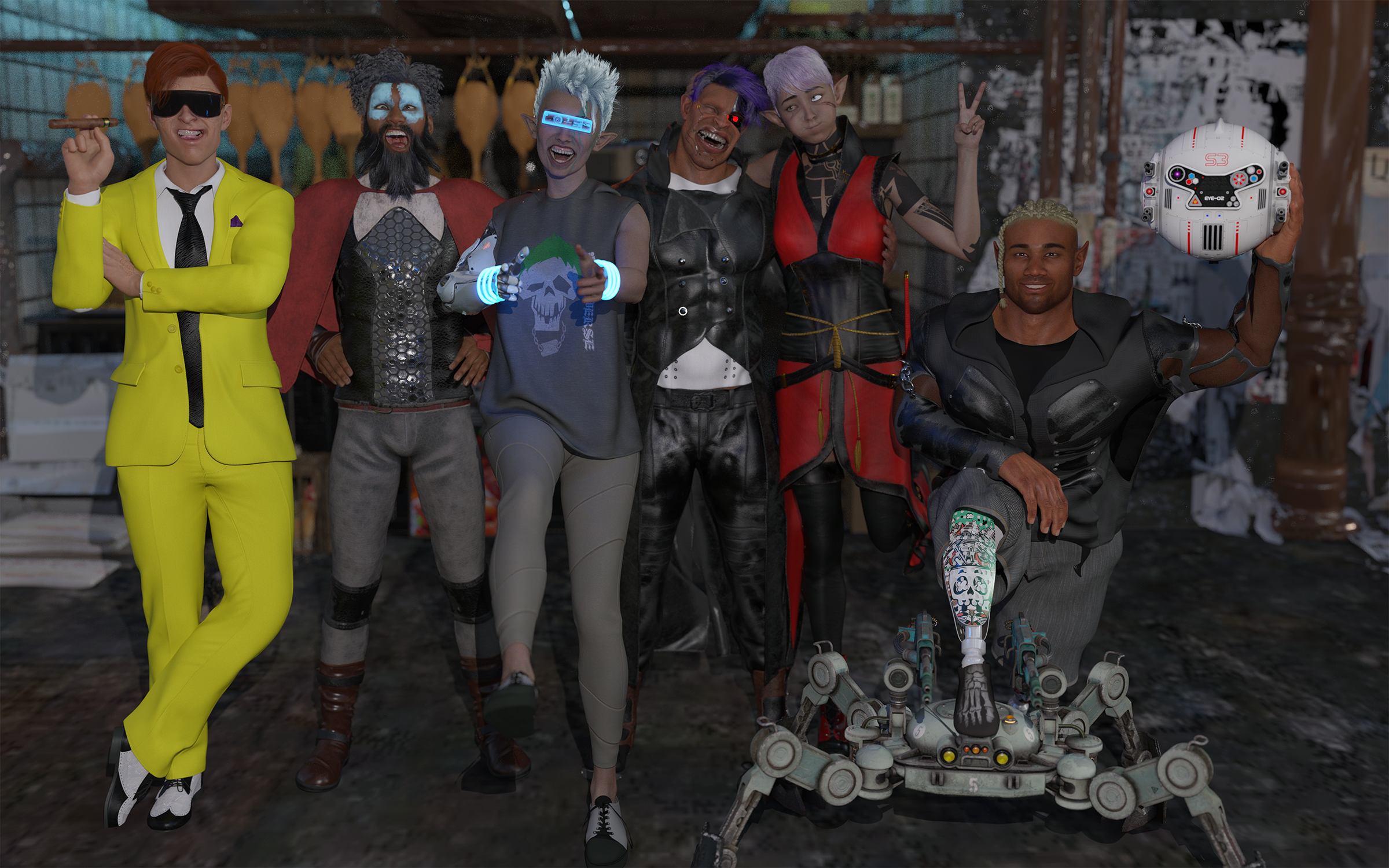More Shadowrun. I went to a lot of trouble to give the heroine a cybereye, and you can't really see it in the render.