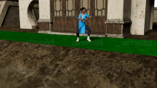 Put a little bit more work into this scene, especially into tooning up the background more. There are still some things I can't figure out, like why his hands aren't outlined, or why it stops drawing the ground textures past a certain distance from the camera.