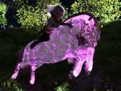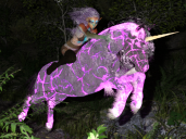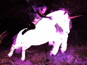 Another work project. I put the new Fi character on a unicorn, then applied Nightmare textures to it, then converted those to Iray and put the diffuse maps in the emissive parameters. Did a quick sim on just her hair (but not the dForce mane and tail yet), and played around with settings to get the look I'm after. Here are three different versions, and I like different aspects of all three. The first, I accidentally left the headlamp on, so it's the clearest and most evenly lit. The second, I cranked the exposure settings, so the horse's emissives are going crazy, but I could maybe edit the textures so only the "veins" are giving off light, but I like how generally dark and kind of sinister it looks. For the third, I added a Terraluna HDRI, so I didn't have to crank the exposure nearly as much to see things clearly.