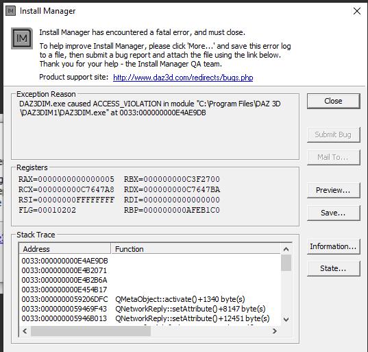 Not sure what's happening, but went to install some packages I bought today, and DIM keeps crashing.