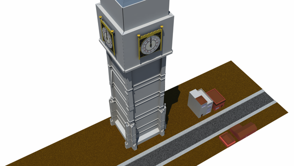 There is font modeling with the clock face numbers. I'll end up with Victoria hanging from the minute hand and a camera angle to emphasize the height.
