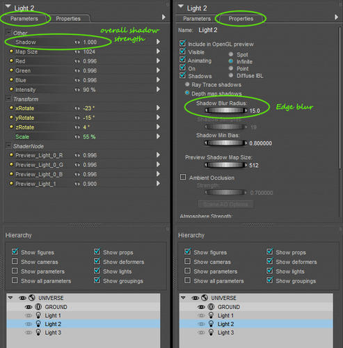 I tend to keep my Shadow Blur Radius at 15 and Shadow Min Bias at 0.1