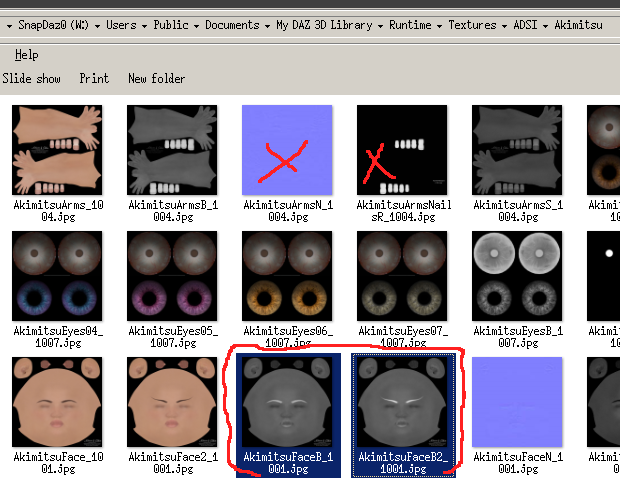 depending on if your using the regular brows or Vulcan brows will depend on what bump you want there, "AkimitsuFaceB" in the bump slot for the face, not the fingernail thing. I'm not seeing anything like that with the iray-apply mats, maybe it's a 3DL conversion mistake, or maps just got 'mixed up' somewhere. I have to force the nail map into the face bump to duplicate that for her on G3F.