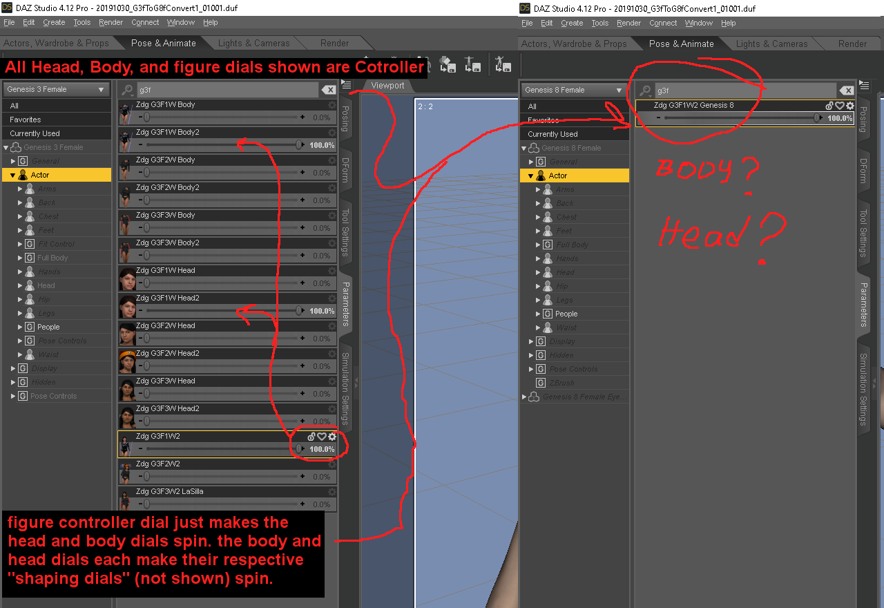 ok, I think 99% of my difficulties are me hoping the converter will do stuff it wasn't meant to do, using it wrong, and just confused about the results. I chatted briefly with Riva over on YT, and I did sort out a dial making other dials spin it wasn't supposed to 'mistake'. before converting another figure using the Scene converter, zero out both G3F and G8F, not just G3F. As for the rest, well, I have 19 pages to catch up on here. I was hoping to convert over these dials from a set I made years ago, so long ago I have forgotten most of the steps I did to make the dials.