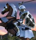 Thanks everybody for your suggestions. After playing around for awhile and some trial and error, I found I could acheive a much improved version by using the 'brushed' version of the chromium shader on those section that had the reflections that looked like holes. I also used the Sir Robin texture set on the shin guards. (For this render I didn't like the results of using the Sir Robin Textures on the other parts.)