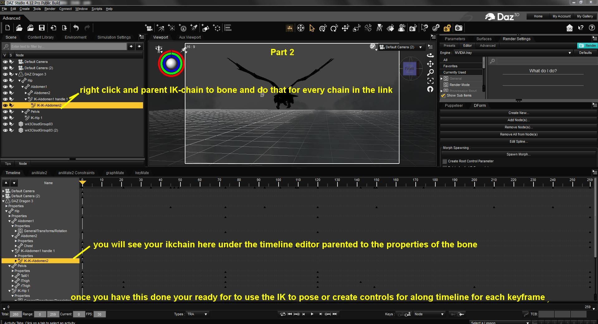 Daz IK solver is missing a hardsurface tool & a keyframe editor lock for each bone edited on its own timeline in the editor and autofollower for the chains to connect each linked chain in one click for that one bone or joint . As you can see i am very hopeful as you can see from my screen captures its has been very useful for manipulating bones in my dragon animation for the tail which has a sequence of bones to be posed and edited into the timeline, its still a learning process for me too So I hope I was not to confusing explaining