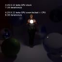 If I am proven correct, then I suggest everyone change the opacity setting of the glowing sphere to 1 before running their benchmarks. That will level the playing field and make the scene render equally across each version.