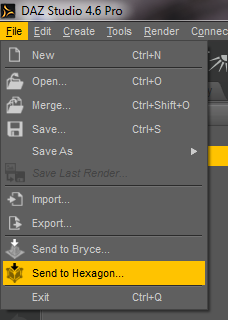 I seem to recall reading somewhere you can take Genesis from Daz to Hex but can't seem to find it. I'm using Daz 4.5.1.36 and can't find the button or tab that send Genesis to Hexagon. Can anyone give me the steps or direct me to a tutorial.