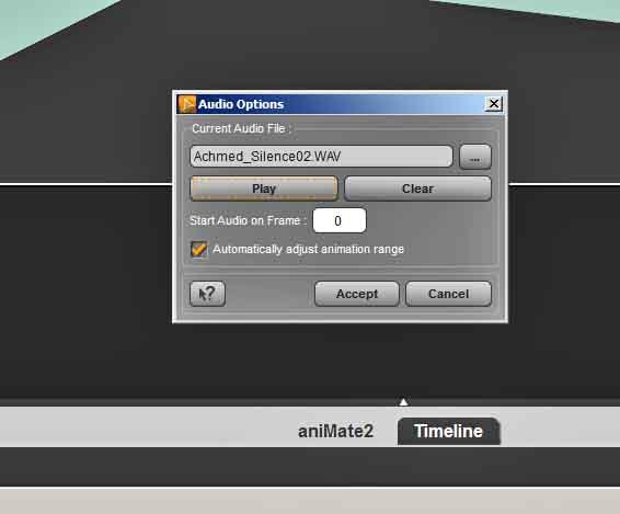 I guess it's not really a problem, I learned to do searches and found that is 2012 someone else had the same misunderstanding. I just want to make sure I understand it correctly. The audio in the Edit and the one on Animate2 aren't for adding music, only for lip sync? In the advice last year someone said that you should still be able to copy music into your scene before post production. But when I try it won't even read my audio. And yes it is a wav file. I'm wondering if it won't even read this file, how will it know to read my file for lip sync?