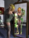 Played with reflections. Instead of having a mirror NOT show a vampire in the wider scene, I decided to have a mirror show skeletons NOT visible in the wide scene. Composited the beauty pass of one render with the reflection pass of another. Result was postworked in Filter Forge.