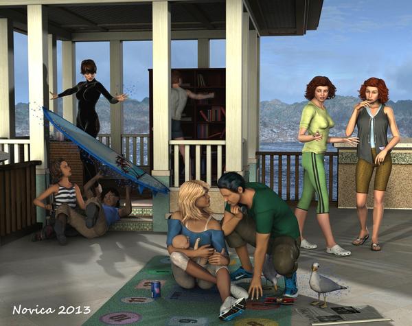 Okay, after three weeks of fiddling (there were 9 people in this scene) here is the second part of the story. I am SO having fun with SeaNautica! (The image is below, but go read the story that goes with it.)