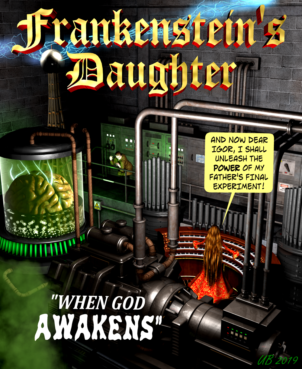 This is an homage to pulp magazines, and a real kitbash. Most of it is the Daz Generator. Other parts include Vickies Brain, The Mad Lab, The Organ, Carrara Eiffel Tower, DNA Morphing coat, Mad Dr. for Genesis, Nova Hair, Zac hair, V3, and M5.