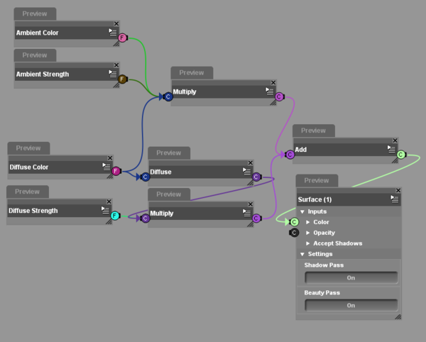 Could someone tell me how the Diffuse, Diffuse Map and Ambient, Ambient Map parameters are combined in the Daz Studio Default Shader to get the final colour value, so I can re-creates something like it in my script?