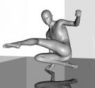 I did make a change to the right hand (in back) so that it acts as a point of balance (for a low spin mid air) rather than as a support pivot as the reference picture seems to indicate. In doing this pose, I don't believe the back hand could work as a support pivot over a flat space for lack of space. It could, if the hand was on a surface behind the character, with extra space below.